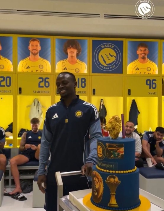 利雅得胜利俱乐部为他准备了印有塞内加尔雄狮和非洲杯冠军奖杯的生日蛋糕,C罗等队友也为他献上掌声。